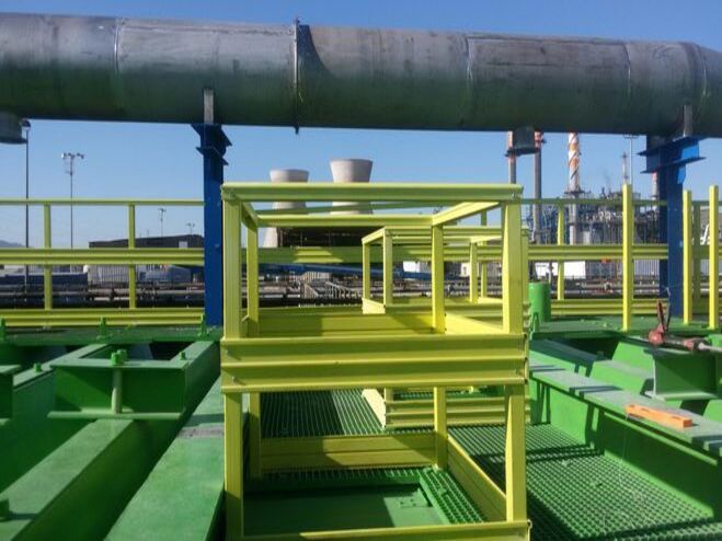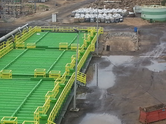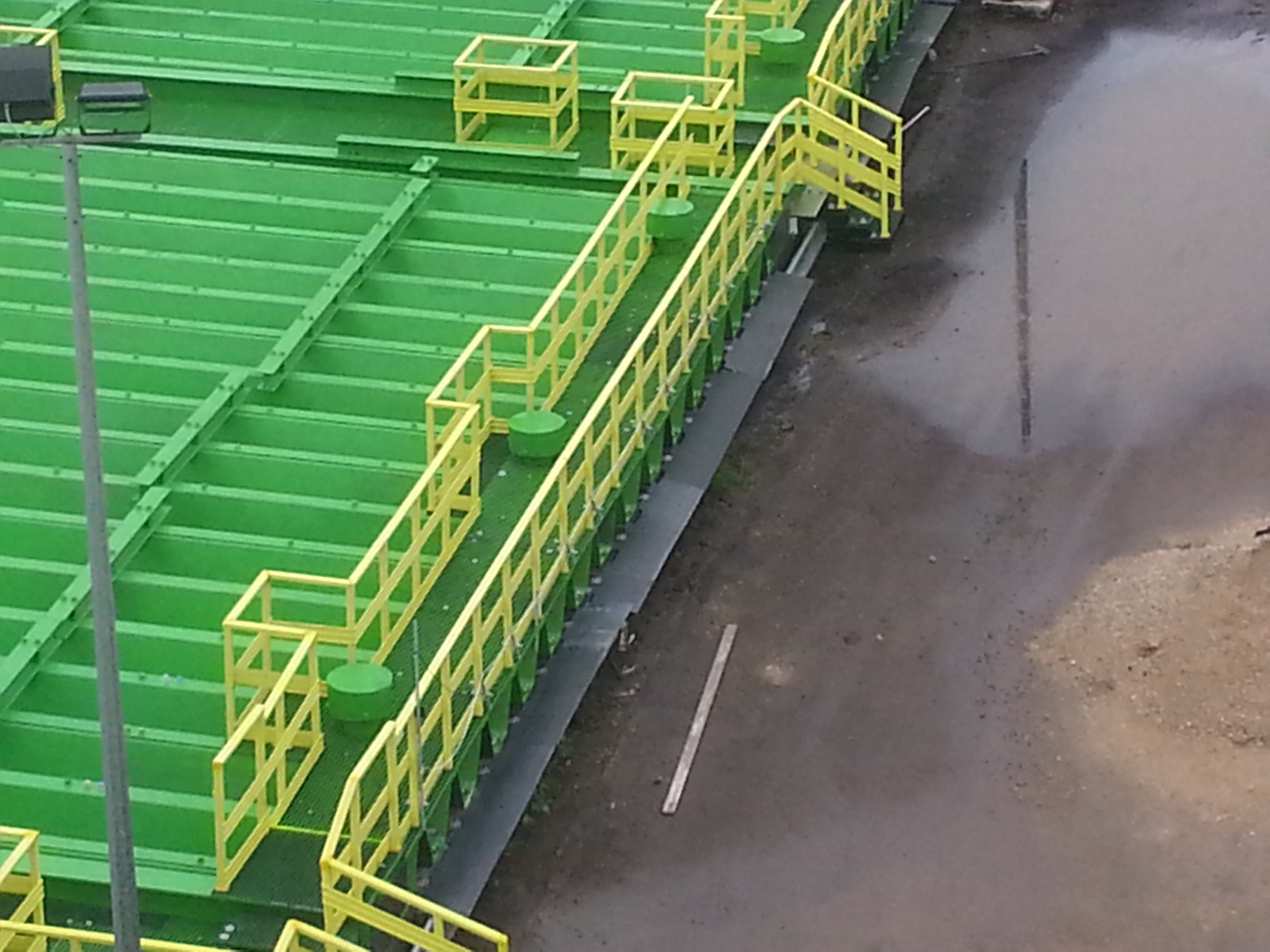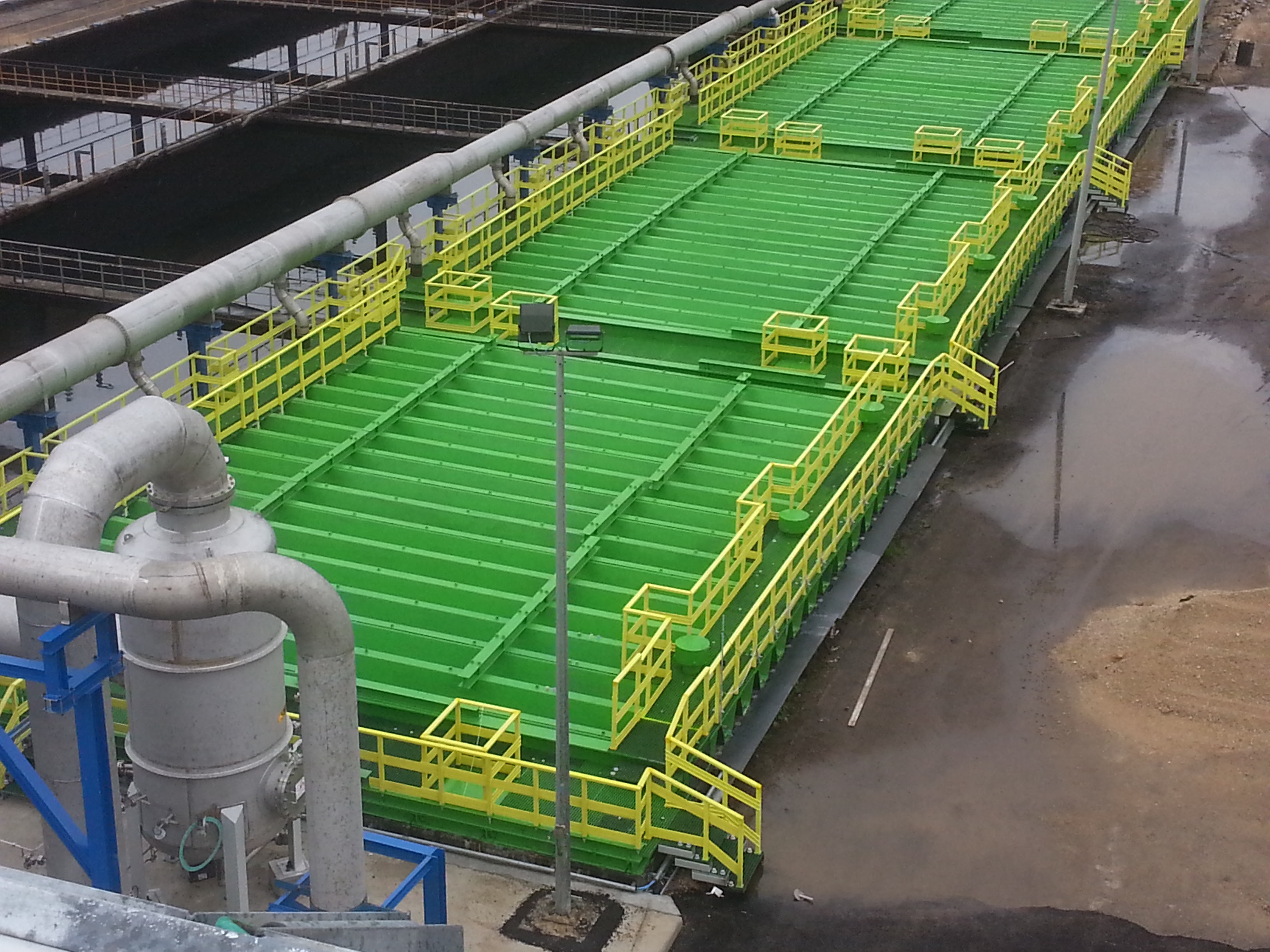 בניית קירויי גג לבריכות כימיקלים הכוללים מדרכי הליכה, מעקות, גרם מדרגות, נשמים ופלאנצ'ים. בסרטון ניתן לראות את הרמת הגג לאחר שנתיים וניקוי הבוצה.